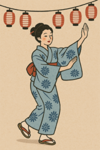 • 現代的な盆踊り(「にゅ~盆踊り」など): 近年、伝統的な盆踊りに新しい要素を取り入れた「にゅ~盆踊り」のようなイベントでは、よりコミュニケーションを重視し、フォークダンス的なペアの動きやハイタッチなどを取り入れた振り付けが人気を集めています。例えば、有名な歌謡曲の「好きになった人」などが盆踊りの曲として使われ、ペアで踊る振り付けがあることもあります。これは伝統的な盆踊りの枠を超えた新しい試みと言えます。