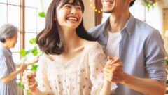 • ふたりが正面で向かい合う:男性の右手は女性の背中、女性の左手は男性の肩や腕に添える。